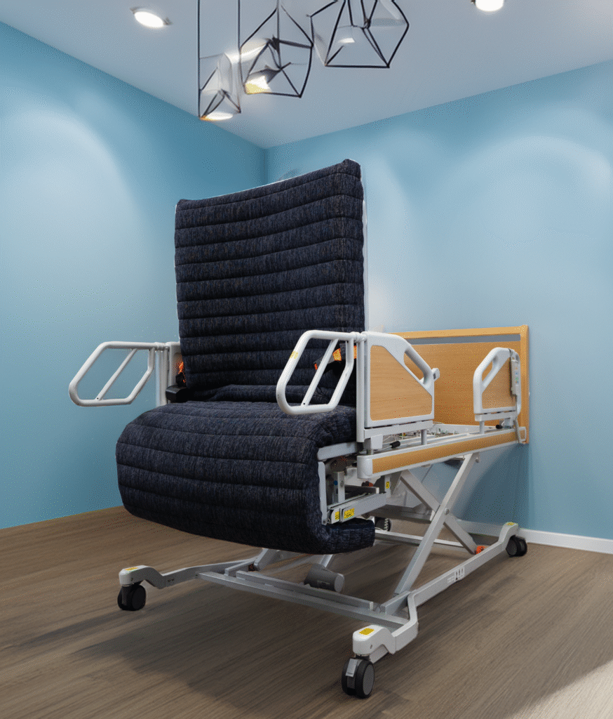 Rotating or 90-Degree Beds: Stop at a seated position, leaving users dependent on caregivers for transfers. While they can help with repositioning and make it easier to sit upright, they do not complete the transition to a true standing posture. As a result, many users still need additional equipment or assistance to move from bed to chair.